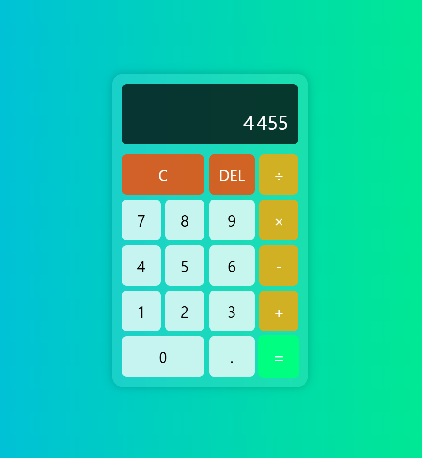 Retour aux projetsDéveloppement d'une calculatrice interactive, interface intuitive, design moderne, opérations de base (addition, soustraction, multiplication, division) et fonctionnalités avancées (suppression, remise à zéro).